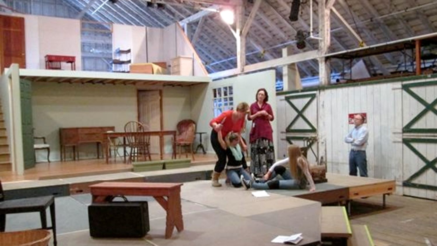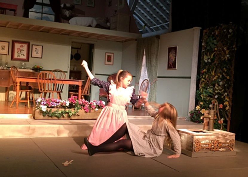 Fight rehearsals - director Lynne Atkins with Shayla Buechner, Kathye Hitt, Madison Bell and Phil Atkins