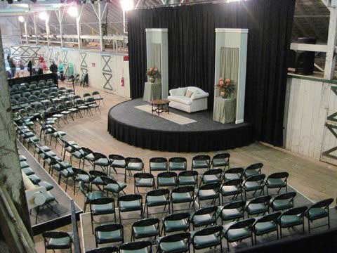 The set - half of the revolving stage placed cross-wise in the barn.
